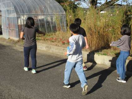 イラストクラブの活動の様子です。自然をテーマにしてイラストを描くので、端末を持って材料を探しに行きました。