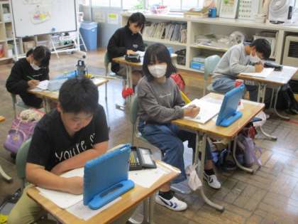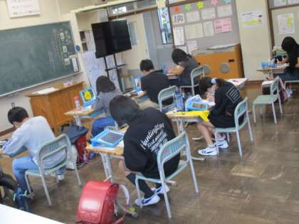 イラストクラブの続きです。教室に戻り、端末の画像を参考にしながらイラストを描いています。