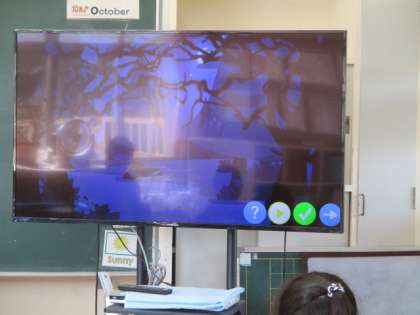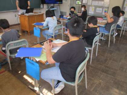 3・4年生です。AETの先生との授業の様子です。とても積極的に取り組んでいました。