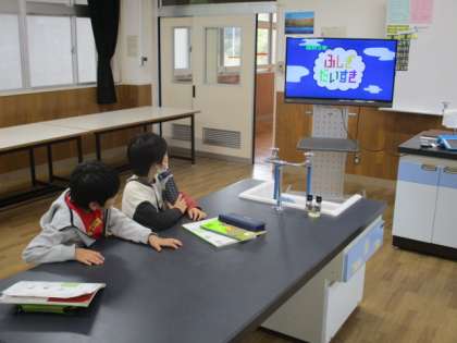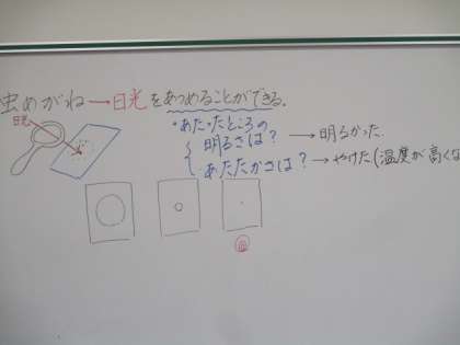 3年生の理科の授業です。曇っていて虫めがねの実験が難しかったため、動画を見ました。