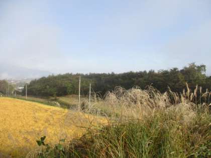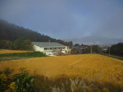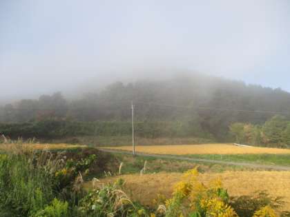 今朝の気温は9度ぐらいで、学校周辺は霧に覆われ、露も降りていました。