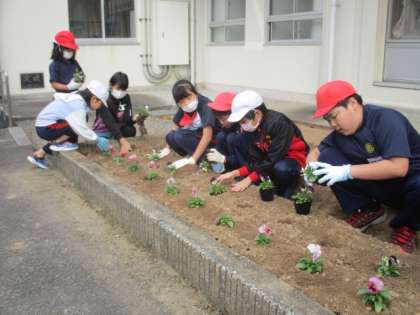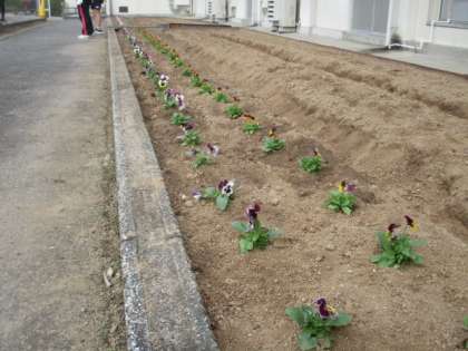 朝の時間に全て植えることができました。全員が整列し,あいさつを行い終了です。