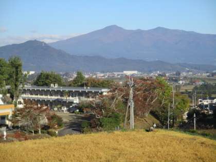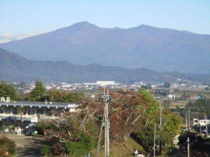 校舎の遠方に安達太良連峰が見え、紅葉しているのがわかりました。