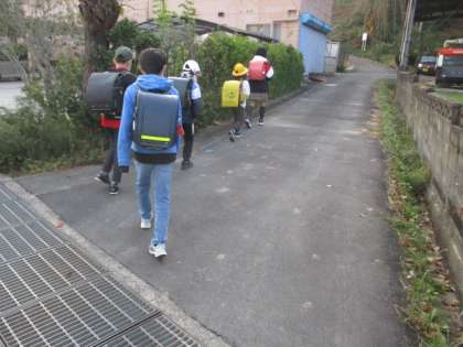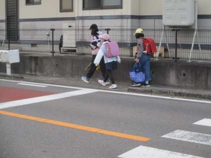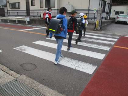 朝の登校の様子です。班長は1年生の歩く速さを考えて歩いています。