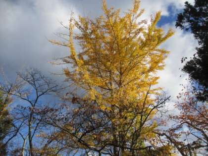 ひょうたん池にも落ち葉が落ちていました。イチョウも1本を除いて葉を落としてしまいました。