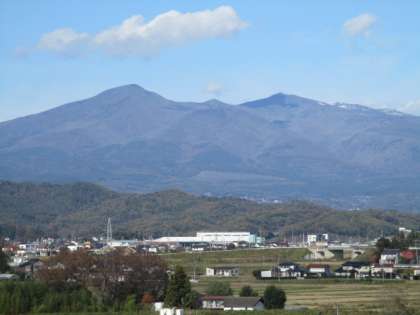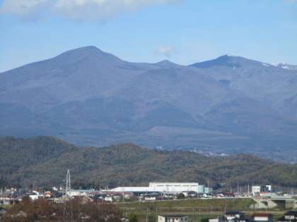 理科室から安達太良連峰が見えました。朝は雪が残っていましたが、頂上付近の雪を残して、他はとけたようでした。