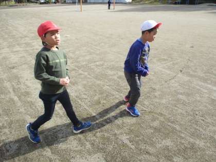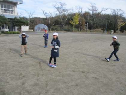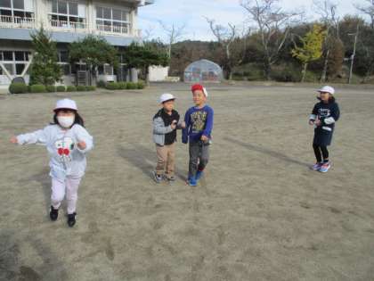 避難訓練の後、短時間でしたが鬼ごっこをしました。今日の鬼ごっこはこおり鬼です。