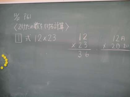 3年生の算数です。2けたの数のかけ算について学習しました。