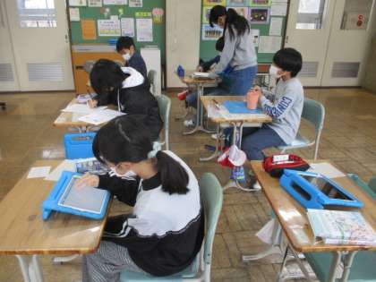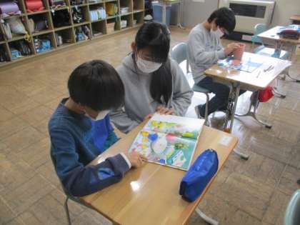 業間の様子です。今日は雨が降ったので、教室で落ち着いて過ごしています。