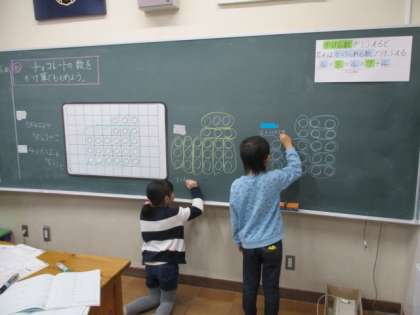 今日の授業の様子を一部お届けします。2年生の算数です。かけ算を学習しています。