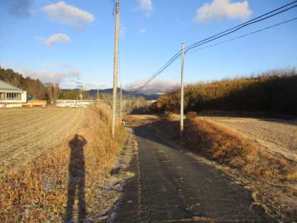 田んぼが凍っていました。