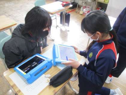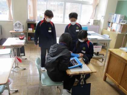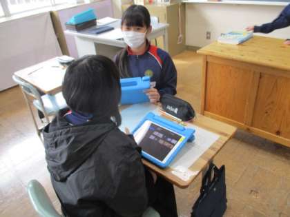 端末を使って楽しんでいます。端末は自由自在に操作できるようです。