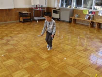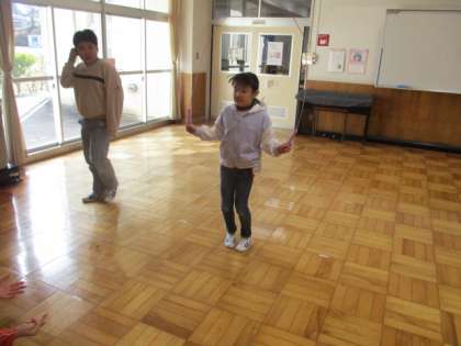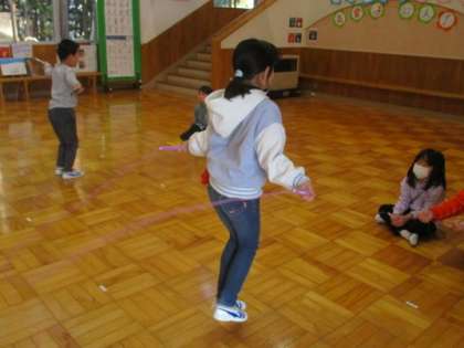 業間の様子です。レインボー広場では、なわとびの練習を行っていました。