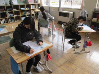6年生は確認テストに取り組んでいます。
