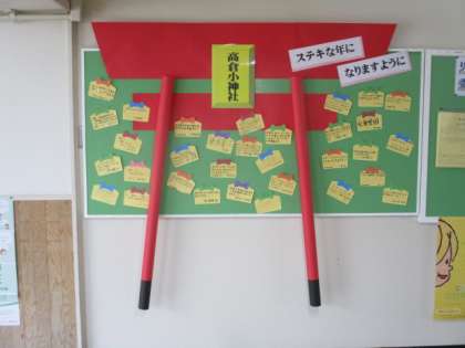 昇降口の掲示板に高倉神社ができました。