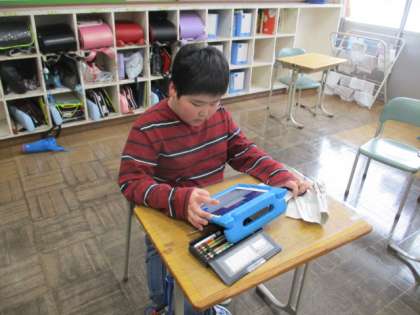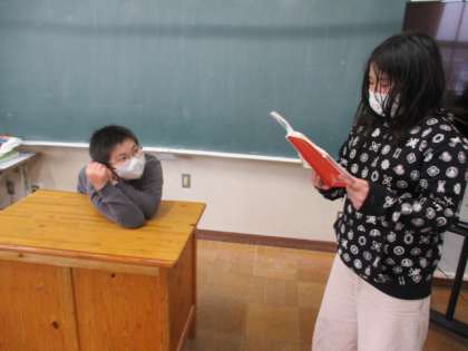 昼休みの様子です。今日は雪が降っていたので、教室で過ごす様子も見られました。