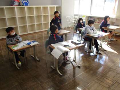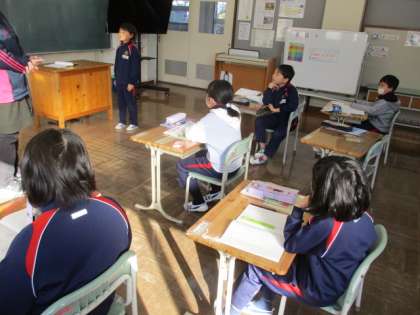今日の授業の様子を一部お届けします。2年生の算数です。かけ算九九について、何秒で言えるか挑戦してみました。