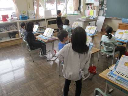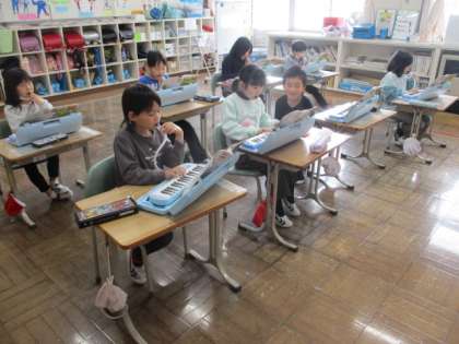 1・2年生の音楽です。とても楽しそうな歌声が聞こえました。鍵盤ハーモニカも上手になりました。