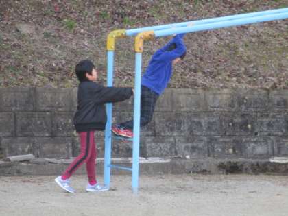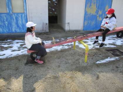 業間の様子です。子どもたちは外て元気に遊んでいます。今日は、春のようにあたたかい1日でした。