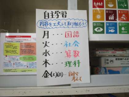 4年生で学習する最後の漢字です。また、自主学習のローテーションが掲示されていました。