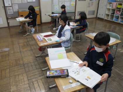 今日の授業の様子をお届けします。1・2年生の国語です。