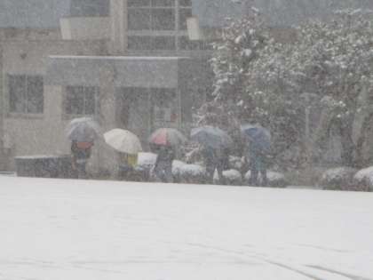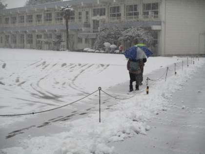 今朝の郡山市は6時頃から雪が降り始め、あっという間に積もっていました。子どもたちの登校の時間には、かなり激しく降っていました。