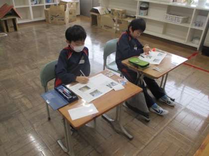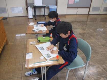 3年生の社会です。見学学習で学んだことを新聞にまとめています。