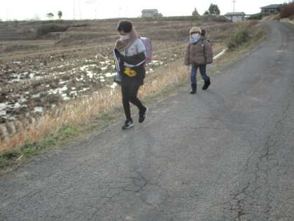 今朝はとても北風が強かったためか、寒く感じられました。子どもたちも強い風が吹く中を歩いて登校していました。