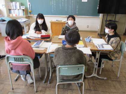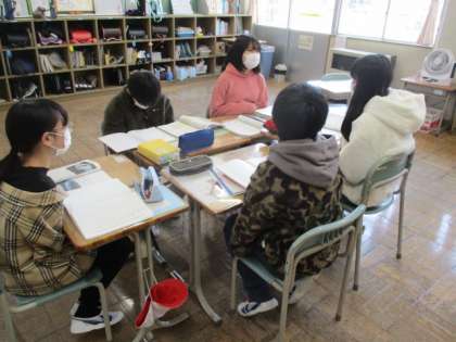 6年生の国語です。教科書「海の命」の登場人物の生き方について、話し合いを行いました。