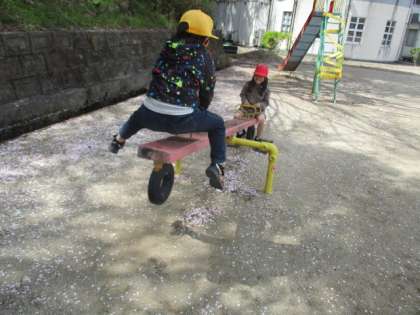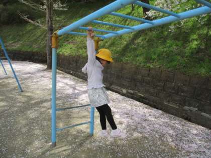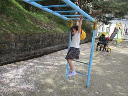 天気が良かったので、外の運動遊具で元気に遊んでいます。