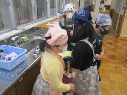5・6年家庭「クッキング・はじめの一歩」です。ガスコンロを使って、やかんにお湯を準備しました。