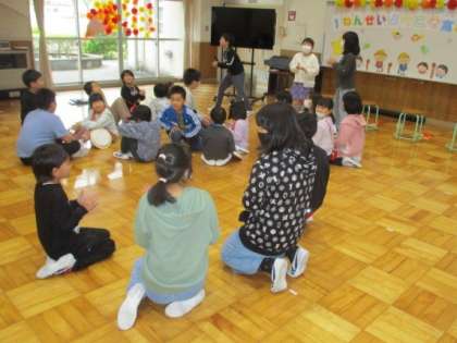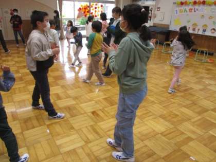 「猛獣狩りに行こうよ」ゲームの続きです。ジェスチャーを交えながら大変楽しく活動することができました。