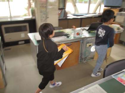 1・2年生の生活科で、学校探検を行いました。2年生の班長が中心になって、各教室や特別教室等を訪問しました。