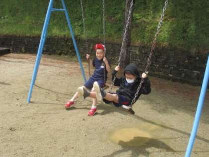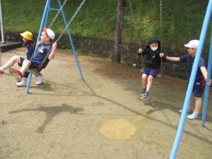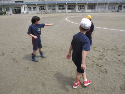 業間の様子です。雨があがったので、外で元気に遊んでいました。