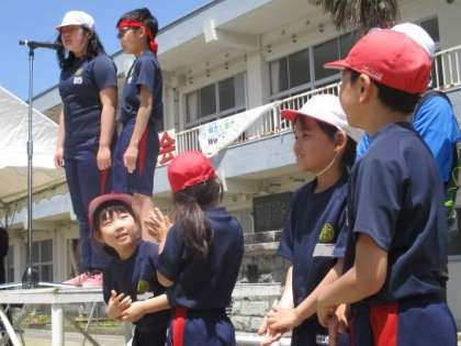 全校児童が保護者・地域の皆様と一緒に、校歌斉唱を行いました。本日は気温が上がり、暑い中での運動会となりました。係としてご協力いただいた保護者の皆様、大変ありがとうございました。本校は保護者・地域の皆様のご協力なくして教育活動は成り立たないと言っても過言ではありません。地域と共にある学校として、今後も教育活動を推進してまいりますので、これからもどうぞよろしくお願いします。