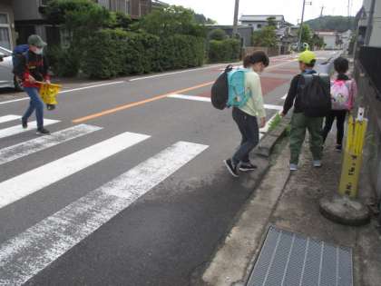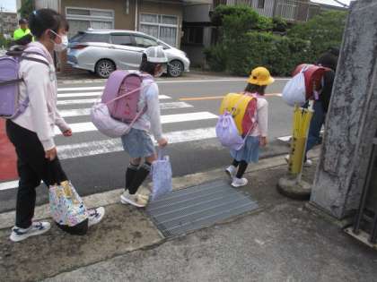 朝の登校の様子です。今朝は少し気温が低く、ひんやりしていました。