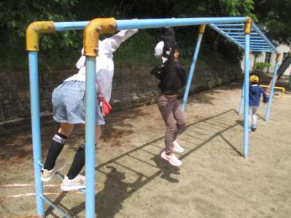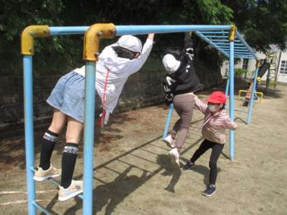 業間の様子をお届けします。雲梯も見事クリアです。