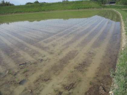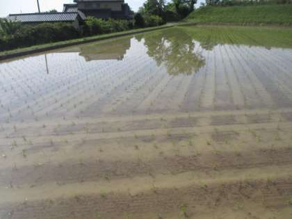 田植えが終わった田んぼがありました。