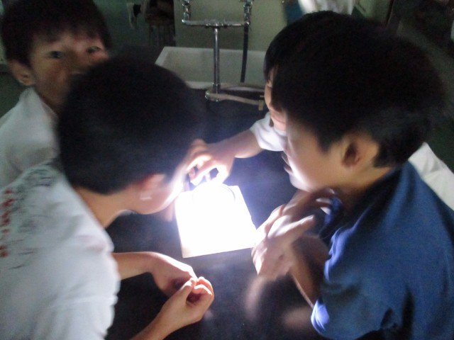 身の回りにある放射線のお話を聞き、霧箱で放射線の姿を観察しました。