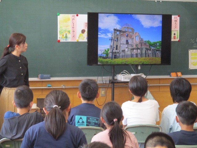 今日は広島県出身の中学校の先生に、原爆についてお話していただきました。