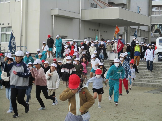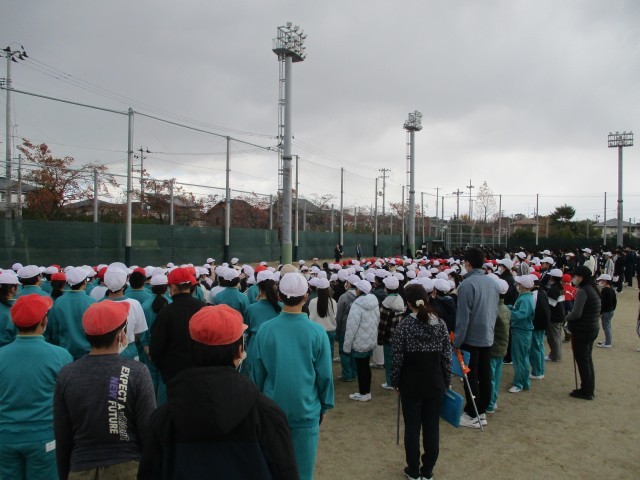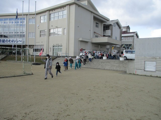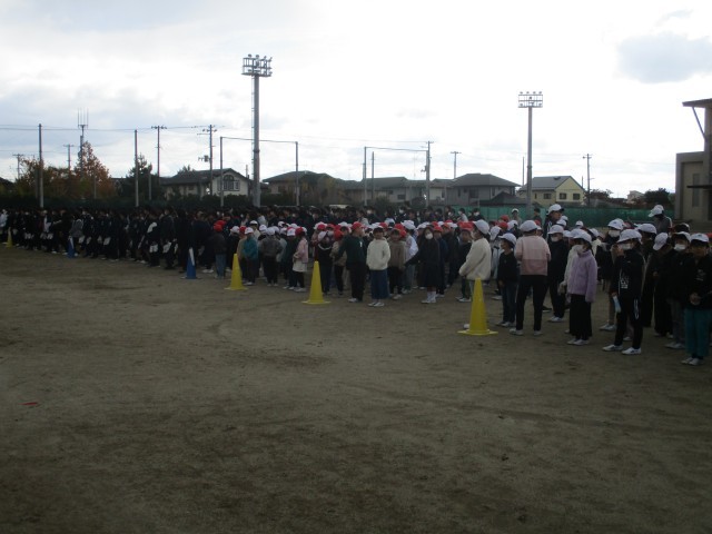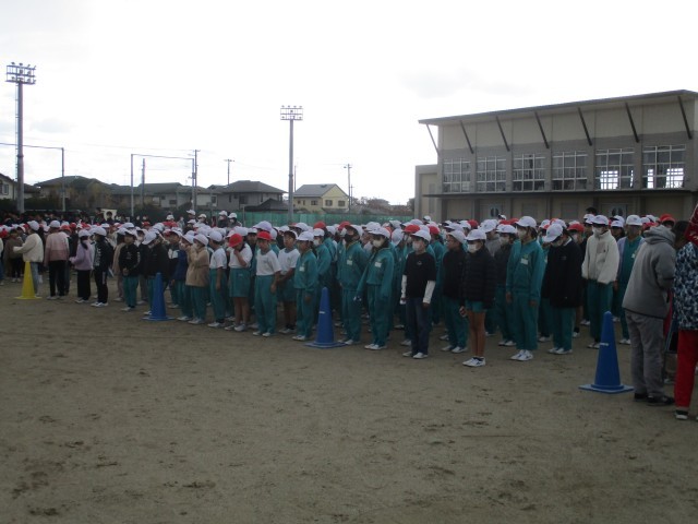 肌寒い風が吹く中、今日は小中合同の避難訓練を実施しました。