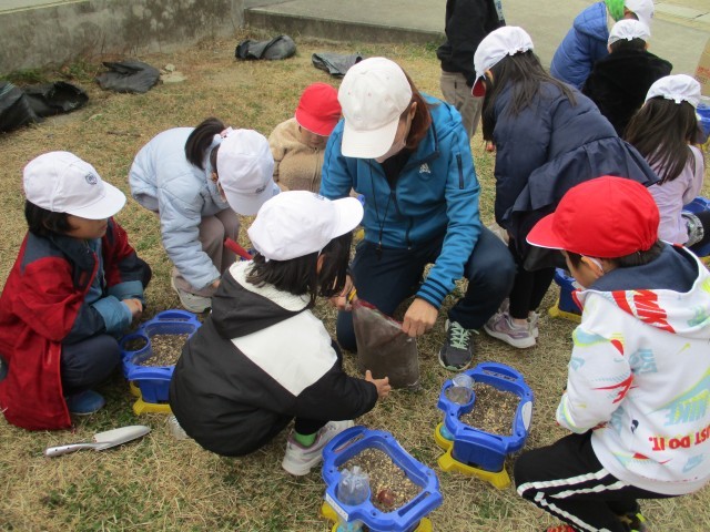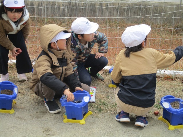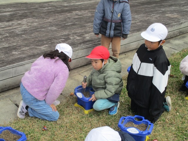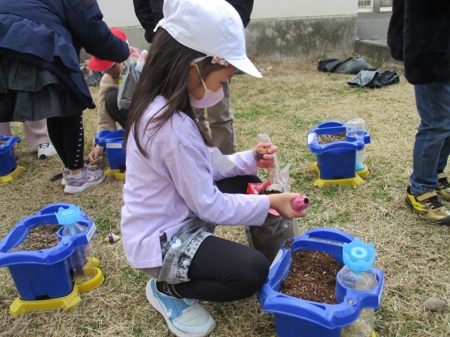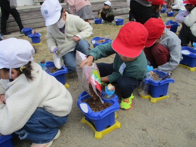 1年生は春に向けてチューリップの球根を植えました。
