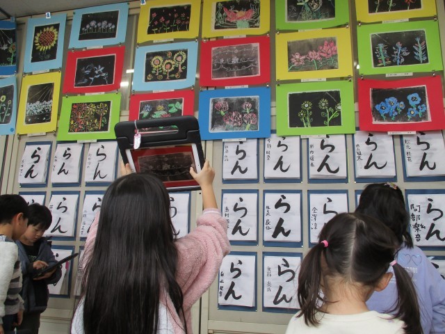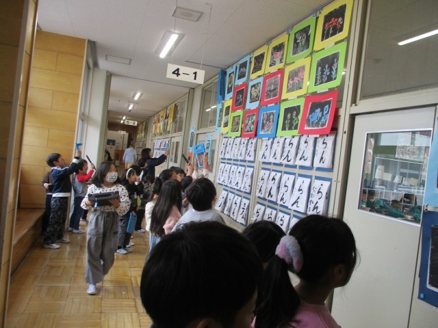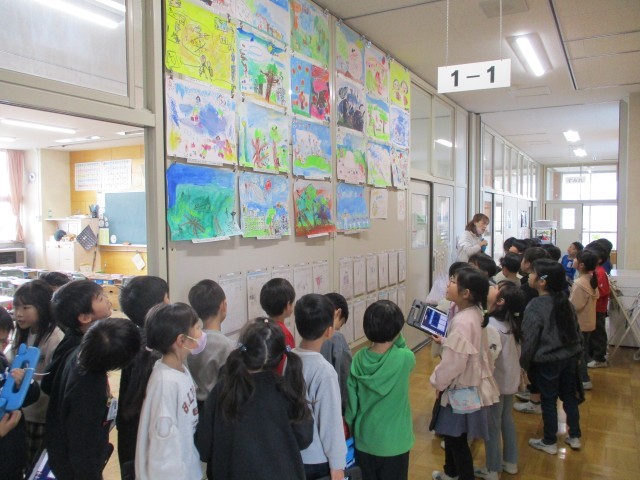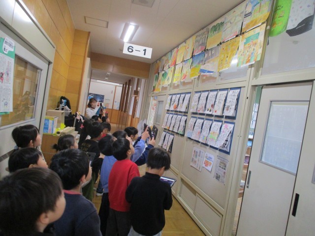 子どもたちは、他のクラスの展示を見て鑑賞の勉強です。