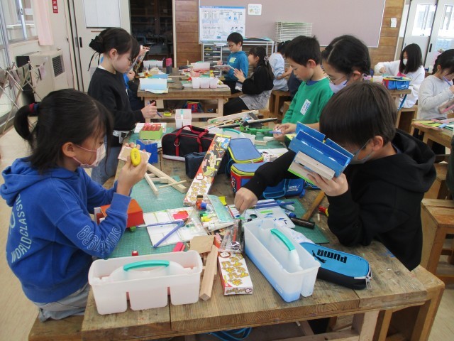 切った材料を思い思いに組み立てていくと、素敵な作品ができ上ります。