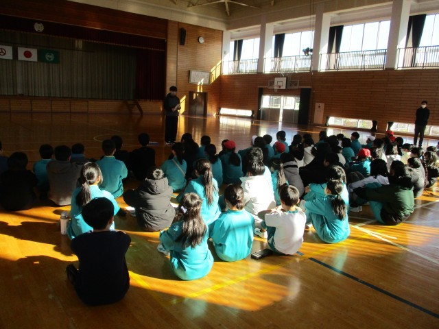 業間には、登校班の班長、副班長が集合して登校班長会が行われました。