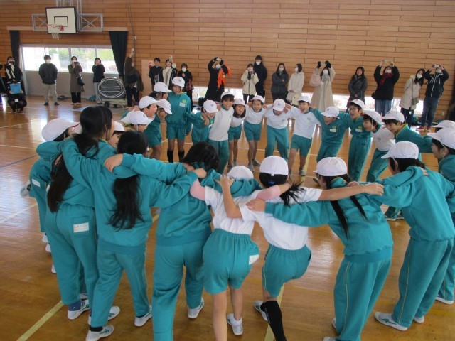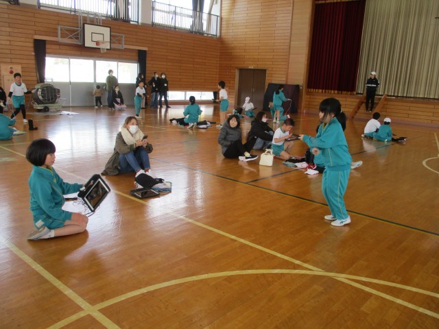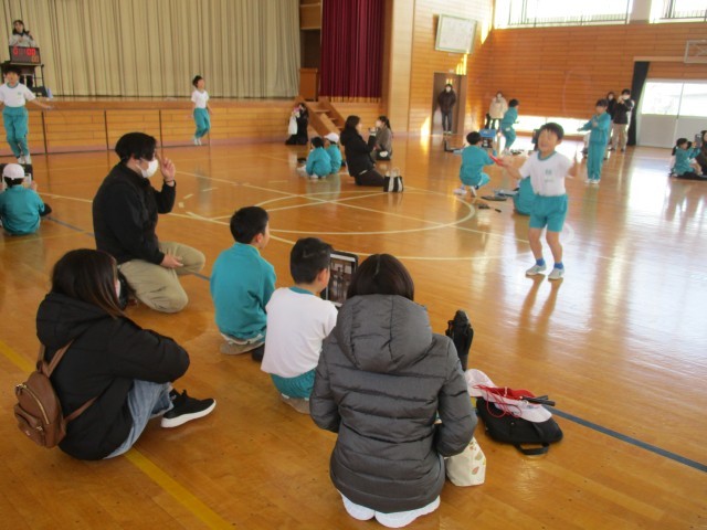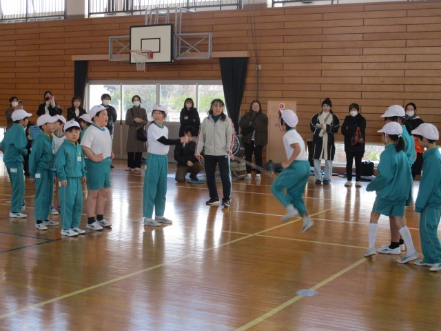 雪がちらつく寒空の中、3年生はなわとび記録会です。