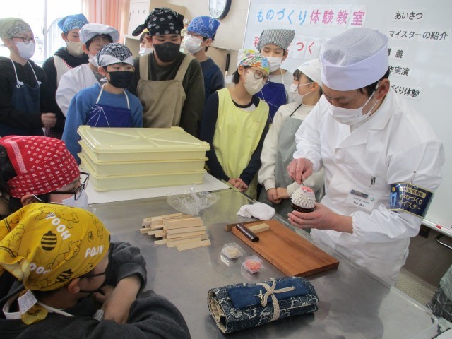 6年生は今年もものづくりマイスターの神山さんご夫妻と県職業能力開発協会の佐藤さんをお招きしてものづくり体験教室を行いました。