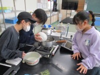 理科室や教室でグループに分かれて活動している子どもたち。