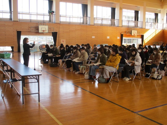 学校で使う準備物の説明や登校班の編成、物品の購入など、入学へ向けてのお話です。