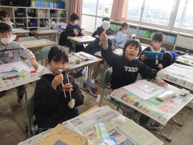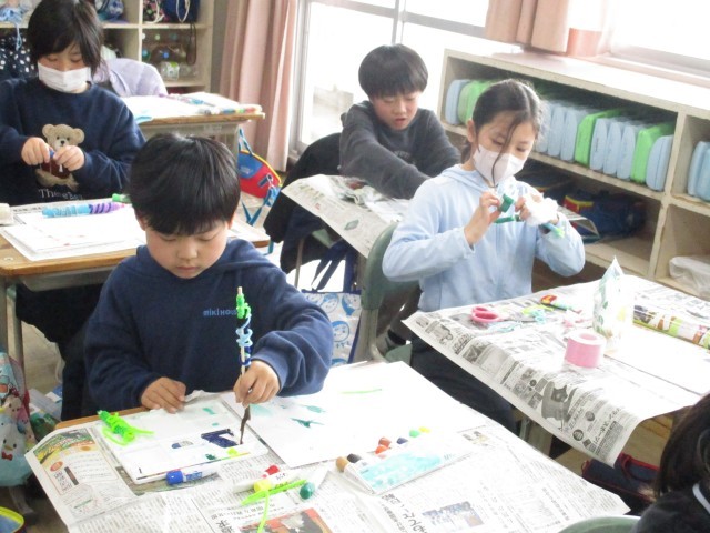 毛糸や糸の素材を使っていろいろな線や模様が描けます。
